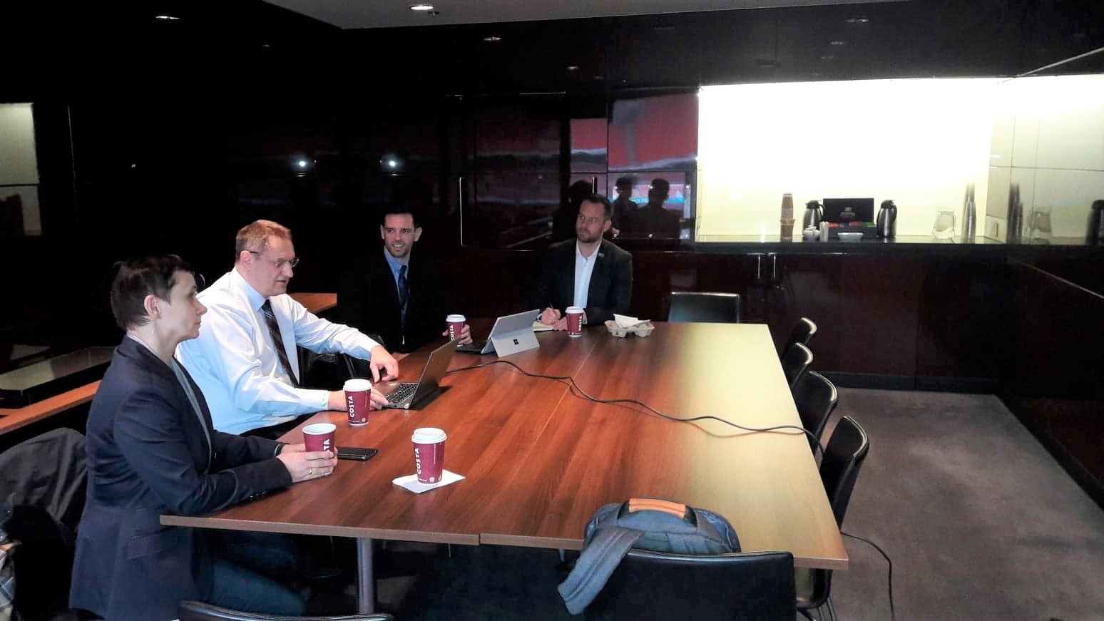 W imieniu Surrey University delegację z Politechniki Rzeszowskiej przyjmowali Prorektor ds. Globalnej Strategii i Współpracy prof. Vince Emery, Dziekan Wydziału Inżynierii i Nauk Fizycznych prof. Paul Smith oraz Główny Menedżer ds. Współpracy Zagranicznej Tom Windle.