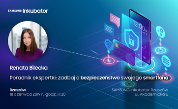 Spotkanie pt. "Zadbaj o bezpieczeństwo swojego smartfona” odbędzie się 18 czerwca o godz.17:30 w Samsung Inkubator przy ul. Akademickiej 6 w Rzeszowie.