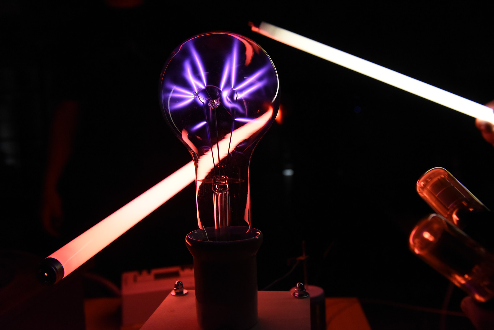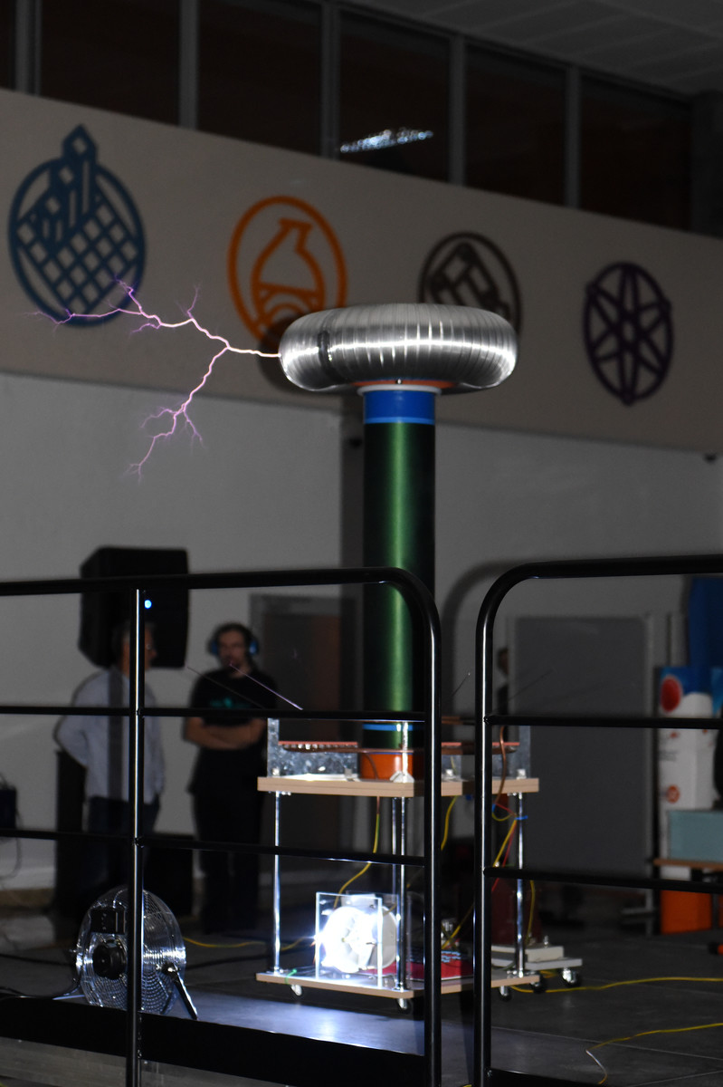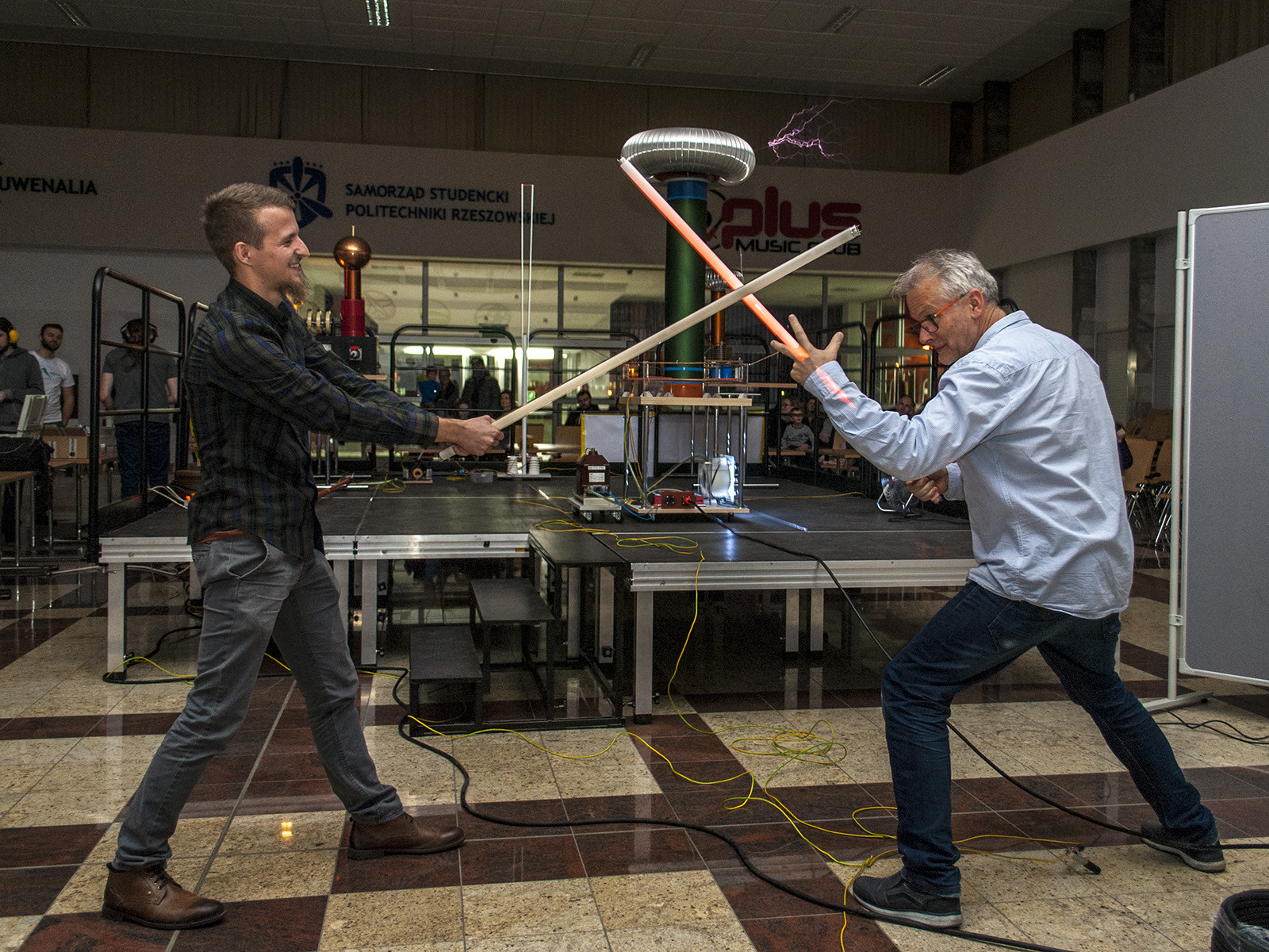 Popularną atrakcją Nocnych Spotkań z Nauką był także „teatr wysokich napięć”, wydarzenie zorganizowane przez firmę Polimedia, partnera Dni Otwartych Politechniki Rzeszowskiej, która współpracuje z uczelnią w ramach Politechniki Dziecięcej. Firma Polimedia przygotowała m.in. spektakl z wykorzystaniem jednych z największych w swoich klasach transformatorów Tesli. Współorganizatorem wydarzenia było Studenckie Koło Naukowe Elektryków „MegaVolt”. Zaprezentowane zostały urządzenia wykonane przez członków koła – generator Van der Graafa, lampowa cewka tesli (VTTC) oraz zademonstrowano wyładowania pod obniżonym ciśnieniem. Wszystkie zawiłości obserwowanych zjawisk i urządzeń wyjaśniał opiekun koła – mgr inż. Sebastian Hajder.