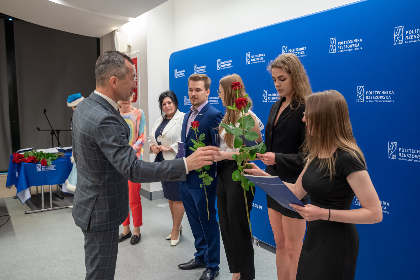 W podziękowaniu za pracę i działania podejmowane na rzecz rozwoju i budowania pozytywnego wizerunku Politechniki Rzeszowskiej 55 studentów naszej uczelni otrzymało nagrody rektora. Prorektor ds. kształcenia dr hab. Iwona Włoch, prof. PRz oraz prorektor ds. studenckich prof. dr hab. Grzegorz Ostasz w asyście przedstawicieli władz poszczególnych wydziałów uroczyście wręczyli listy gratulacyjne studentom aktywnie uczestniczącym w życiu akademickim.