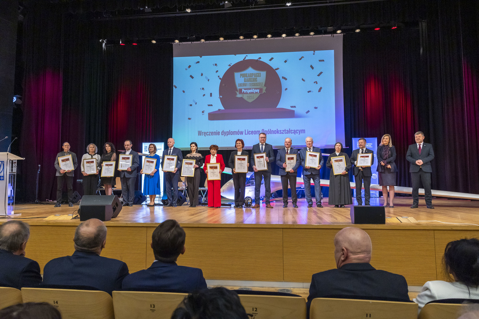 Wyróżnienia wręczono w dwóch kategoriach: 20 najlepszych liceów i 20 najlepszych techników województwa podkarpackiego. Wśród liceów na pierwszym miejscu znalazło się I Społeczne Liceum Ogólnokształcące im. Hetmana Jana Tarnowskiego w Tarnobrzegu, a wśród techników zwyciężył Zespół Szkół Elektronicznych w Rzeszowie. Rektor Politechniki Rzeszowskiej prof. Piotr Koszelnik, gratulując wyróżnionym szkołom, podkreślił, że dla uczelni to zaszczyt gościć w swoich murach grono pedagogiczne i uczniów najlepszych szkół, którzy będą niebawem wybierać swoją dalszą drogę edukacyjną. „Stoicie przed najważniejszą decyzją w życiu. Zachęcam Was, abyście rozważyli studia na Politechnice Rzeszowskiej, które dają gwarancję znakomitego rozwoju, realizacji pasji i perspektywę atrakcyjnej pracy zapewniającej dobrą jakość życia” – mówił rektor.