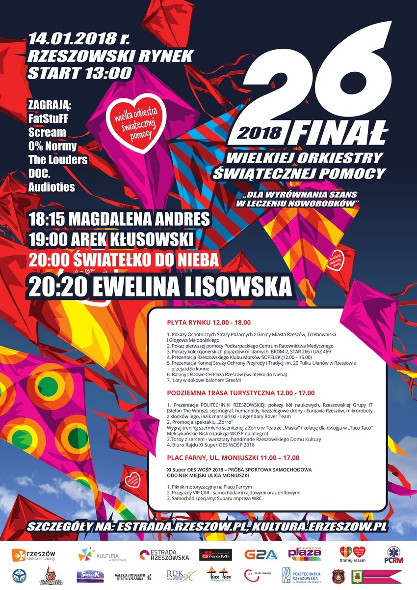 Podczas 26. Finału WOŚP zaprezentuje się koło naukowe EUROAVIA Rzeszów, które pokaże modele samolotów oraz dronów. Pasjonatów kosmonautyki zapewne zainteresuje łazik marsjański zbudowany przez studentów Legendary Rover Team. Nie zabraknie również koła naukowego Esprit i pokazów chemicznych.